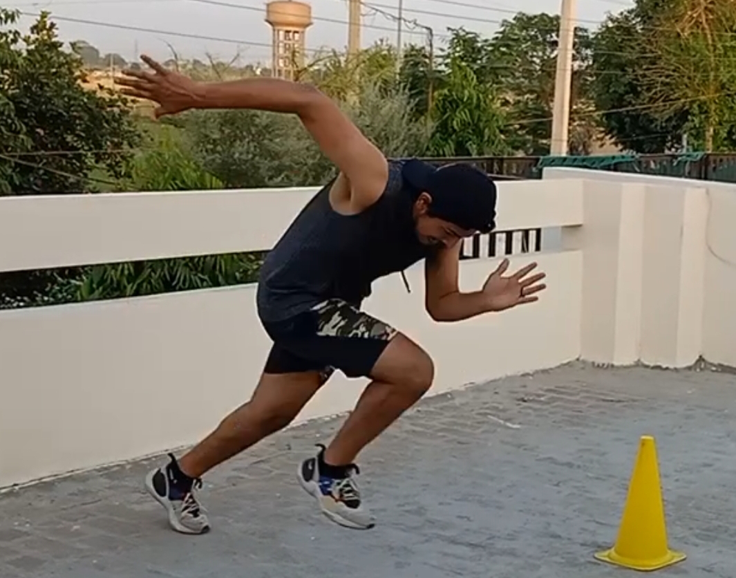 Example: In the video you will see how this athlete manages to secure a good take off position immediately. This is what we call ‘stance to push’ movement and it is very common in cricket where a player is never sure of the position they may have to take off.